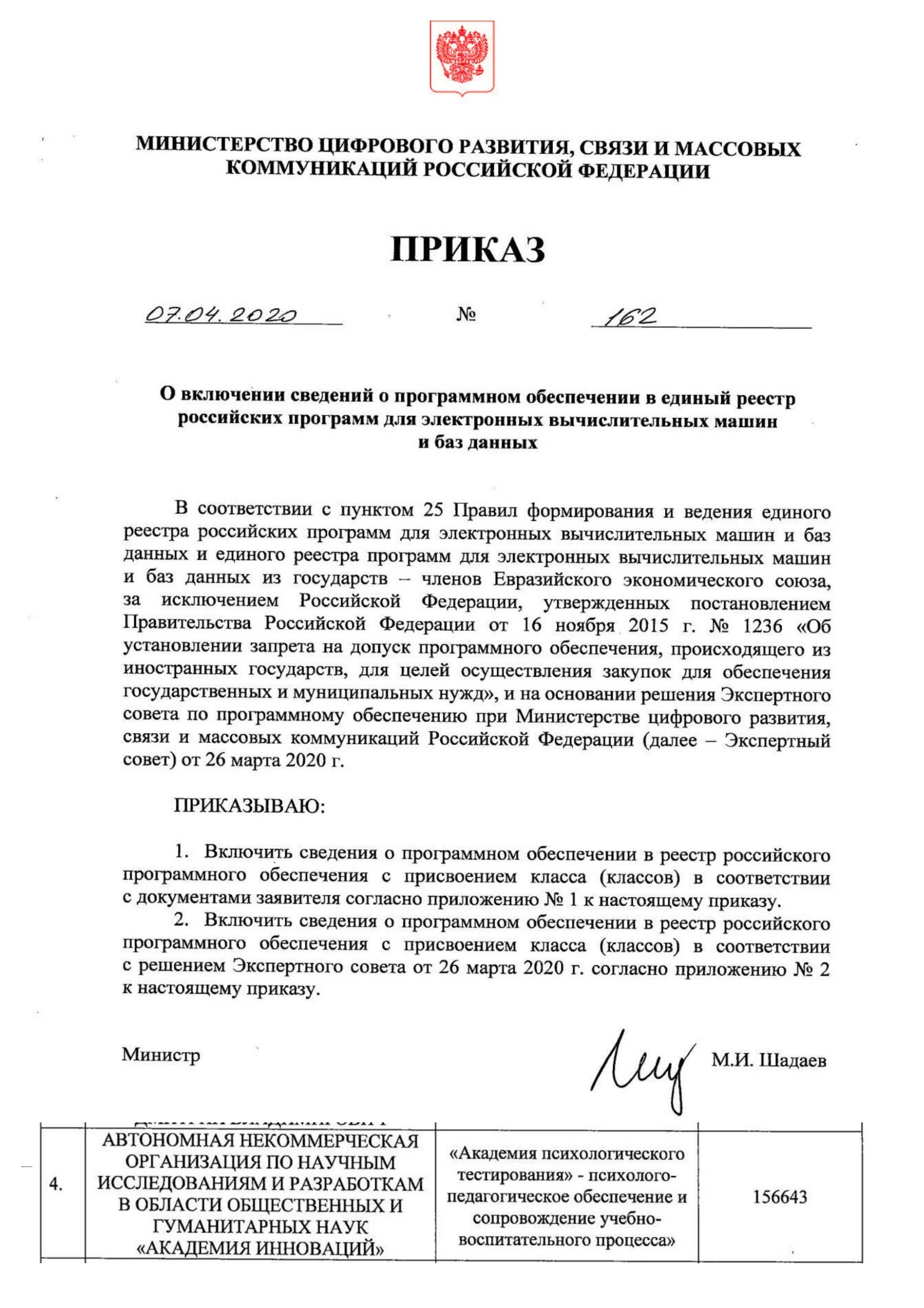 «Я рад приветствовать всех тех, кто сегодня готов к продуктивной, научной и творческой работе в системе образования Российской Федерации. Созданная нами инновационная Программа психолого-педагогического обеспечения и сопровождения учебно-воспитательного процесса "Академия психологического тестирования» целиком и полностью предназначена главным участникам образовательного процесса - классным руководителям и кураторам учебных групп. В основу применяемых нами современных информационных технологий заложено решение задач удобного и несложного проведения психолого-педагогических изучений с обучающимися. Программа обеспечила высокую скорость обработки поступающей информации с предоставлением научных рекомендаций, выводов с текстовым и графическим отображением результатов.